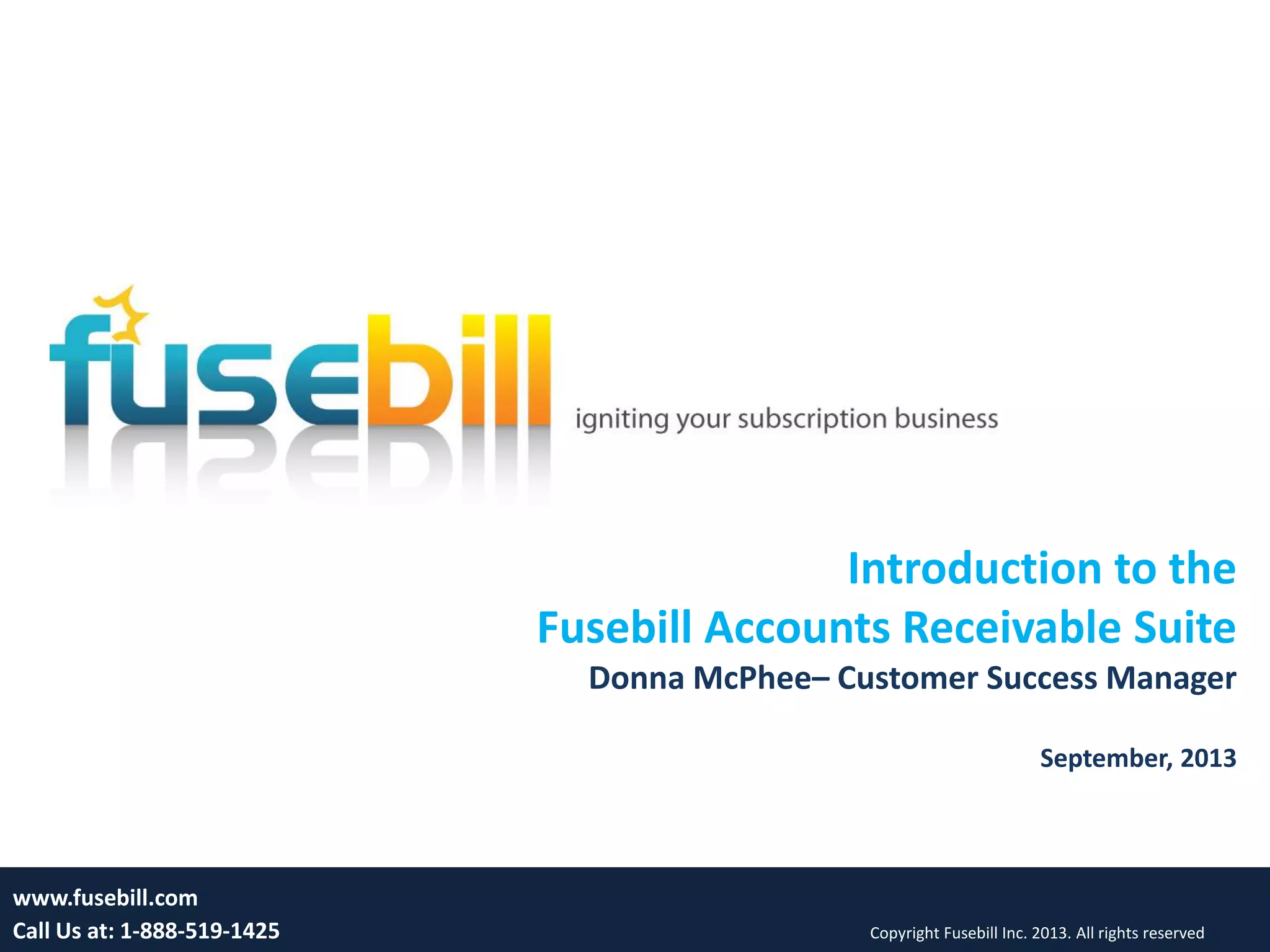 The document introduces the Fusebill Accounts Receivable Suite, which automates recurring billing and payment processing. It allows businesses to invoice customers, accept manual payments, and offers reporting on balances and collections. The suite integrates account receivable functionality to enable billing, payment tracking, and customization of invoices. It also supports one-time credit card payments for account holders through its manual payment options.