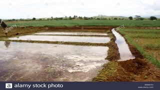 This document provides an introduction to irrigation engineering. It discusses the necessity of irrigation in India due to variable rainfall and the need to maximize crop production. The advantages of irrigation include increased food production, optimal crop benefits, and generation of hydroelectric power. However, disadvantages can include water pollution, rising water tables, and waterlogging from over-irrigation. The document also outlines different types of irrigation like surface, flood, and lift irrigation. It describes techniques used in India for water distribution to farms, such as free flooding, border flooding, check flooding and drip irrigation.
