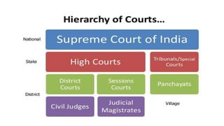 The document outlines the evolution of India's legal system from the establishment of common law under British rule to the current constitutional framework post-independence. It emphasizes the importance of law in regulating conduct, protecting rights, and maintaining societal order. Additionally, it details various branches of law, particularly mercantile law, and its significance in commercial dealings and social justice.