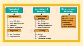 This document introduces machine learning concepts through a webinar presentation. It begins with introductions and definitions of machine learning from Wikipedia and O'Reilly. It then provides examples of artificial intelligence and machine learning applications. The main machine learning concepts covered include supervised learning, unsupervised learning, and reinforcement learning. Supervised learning is described as learning from labeled examples, while unsupervised learning finds patterns in unlabeled data. Reinforcement learning involves an agent interacting with an environment and receiving rewards or punishments to achieve goals. Examples of reinforcement learning applications include autonomous vehicles and game playing agents. In closing, the presenter thanks college administrators and attendees for their participation.