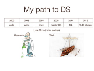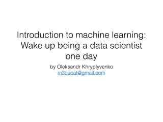 The document provides an introduction to machine learning. It discusses the author's path to becoming a data scientist and some key machine learning concepts, including: