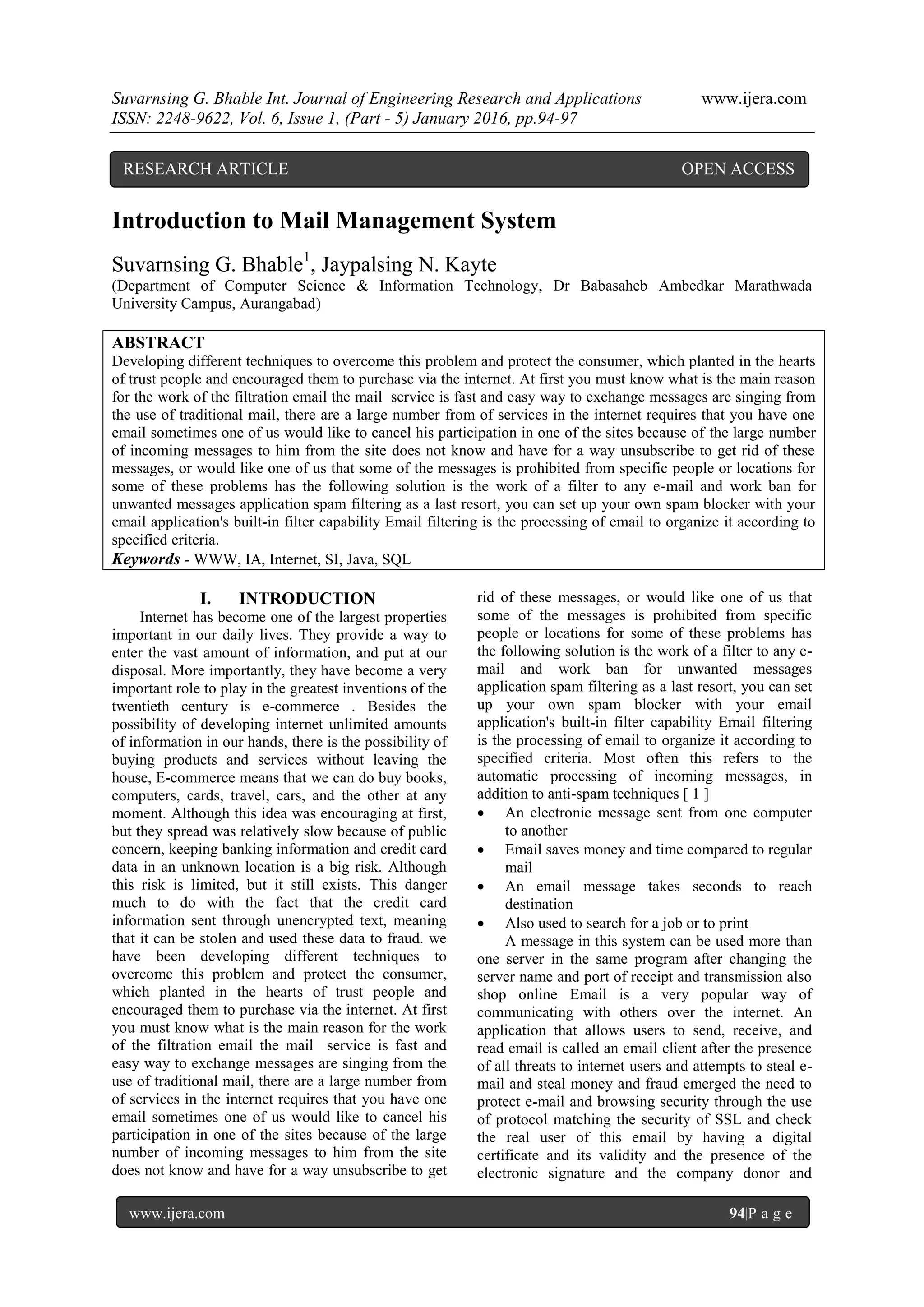 The document discusses the development of a mail management system focused on improving email security and filtering to protect users from spam and fraud. It highlights the need for encryption and user verification, the use of protocols like SSL, and the technical requirements for an email filtering application. Additionally, it analyzes the advantages and disadvantages of internet usage and emphasizes the importance of safeguarding personal information in email communication.