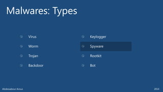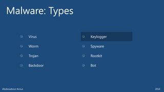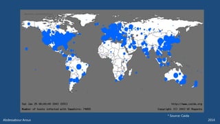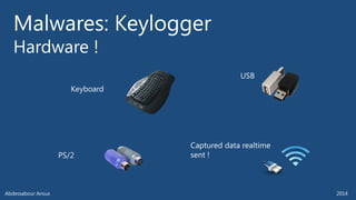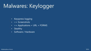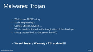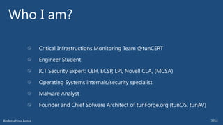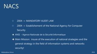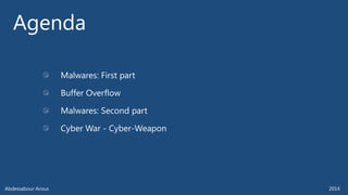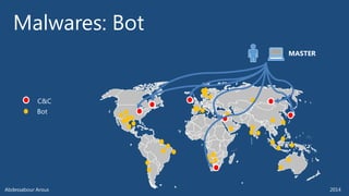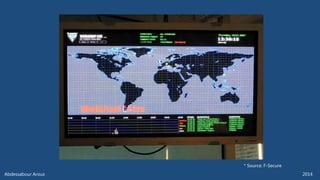 The document outlines various technical aspects related to cybersecurity, including monitoring teams, attack detection, and incident response. It references multiple cyber threats and their propagation speeds, along with associated vulnerabilities in software like Adobe Reader and Java. Additionally, it touches on international perspectives regarding cyber warfare and legal considerations.