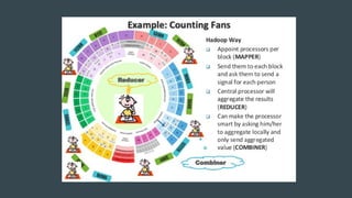 MapReduce provides a programming model for processing large datasets in a distributed, parallel manner. It involves two main steps - the map step where the input data is converted into intermediate key-value pairs, and the reduce step where the intermediate outputs are aggregated based on keys to produce the final results. Hadoop is an open-source software framework that allows distributed processing of large datasets across clusters of computers using MapReduce.