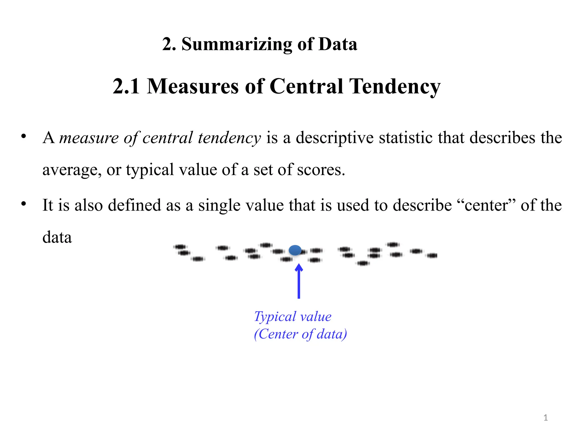 This document discusses measures of central tendency, which summarize data sets using values such as mean, median, and mode. It defines and illustrates the properties and calculations of these measures, including arithmetic, geometric, and harmonic means. Additionally, it touches on quantiles, and the importance of measures of dispersion to gauge the variability of data.