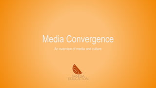 Media convergence refers to the process by which previously distinct technologies and media share tasks and resources. There are several types of media convergence including convergence of devices, networks, services, and content. Device convergence involves different devices taking on similar functions, like phones that can take photos and videos. Network convergence occurs when separate networks use similar protocols. Service and content convergence involve the same services and content being distributed across different media channels. Media convergence has transformed the media industry, increased cross-media usage, and led to new forms of online interaction and engagement.