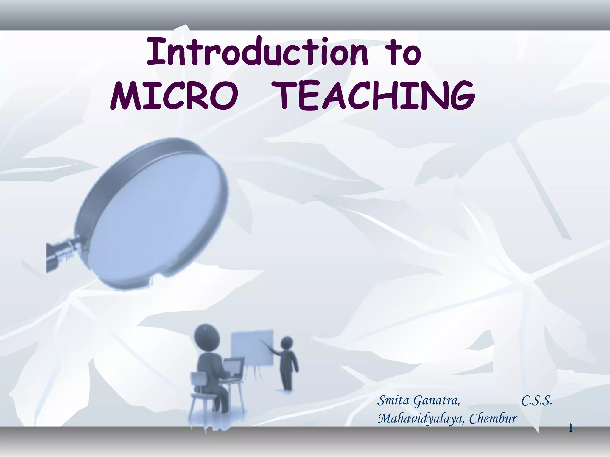 Microteaching involves teaching short lessons (5-7 minutes) to small groups of students (6-10) to practice and improve teaching skills. The microteaching cycle includes planning a micro lesson, teaching it, receiving peer feedback, revising the lesson, reteaching to another group, and getting additional feedback. This allows pre-service and in-service teachers to develop skills like introducing topics, questioning techniques, explanations, and engaging students. Microteaching helps teachers identify strengths and weaknesses to continuously improve their teaching abilities.