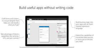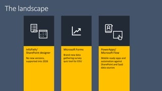 This document provides an introduction to Microsoft Flow and PowerApps. It discusses how Flow can be used to automate workflows and how PowerApps allows users to build custom apps, workflows and forms. The document highlights how PowerApps integrates with SharePoint and other data sources. It also outlines the product roadmaps and upcoming improvements, including kicking off flows directly from SharePoint items. The presenter's contact information is provided at the end.