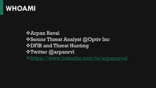 The document discusses the MITRE ATT&CK framework, highlighting its purpose as a knowledge base for understanding adversarial behaviors during cyber-attacks. It outlines various tactics, techniques, and procedures (TTPs) used by threat actors and emphasizes the need for comprehensive threat intelligence and detection strategies. Additionally, it provides insights on improving detection capabilities and mapping adversary behaviors to enhance security measures.