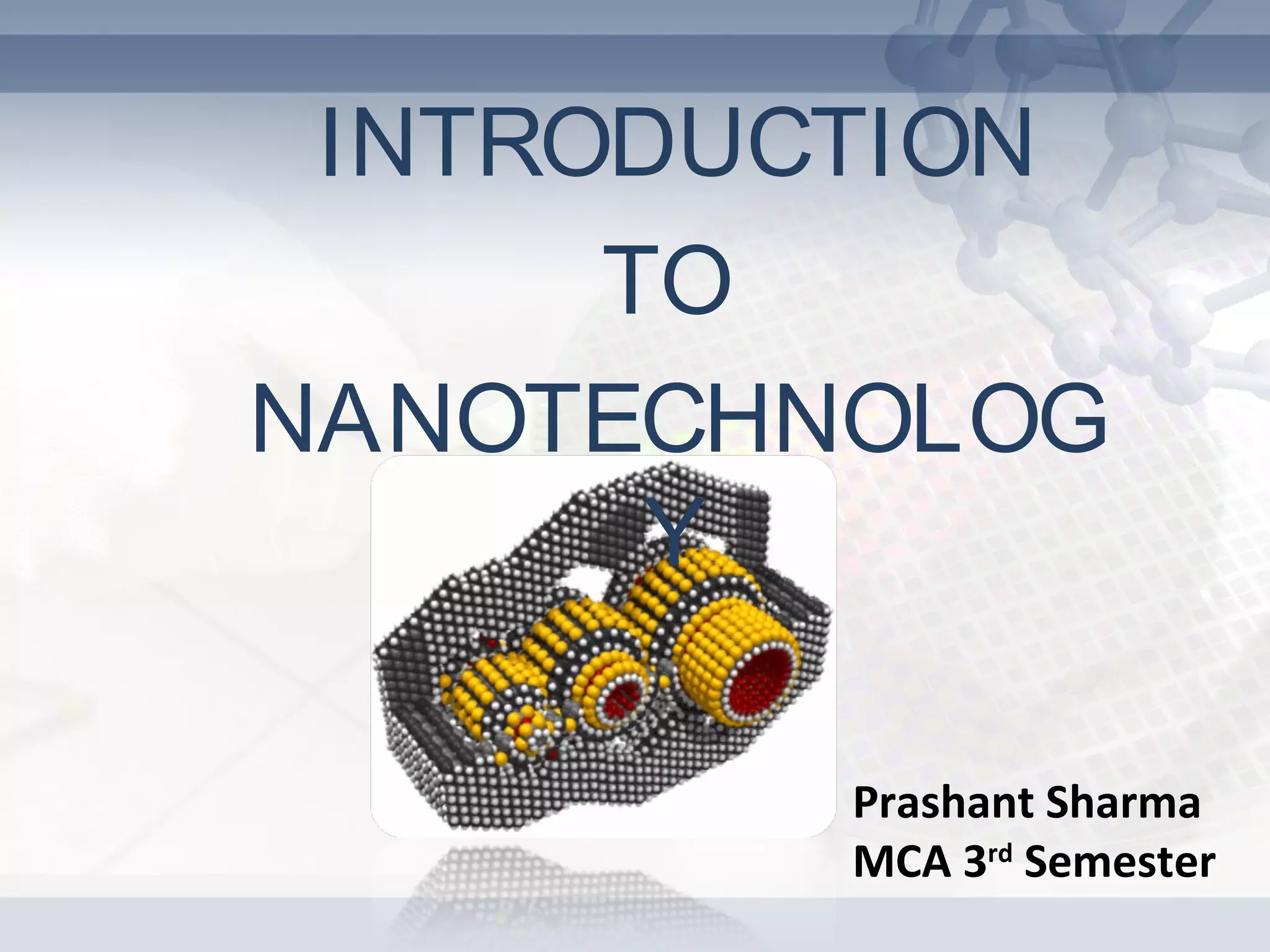 Nanotechnology is the science and engineering at the scale of atoms and molecules. It involves building and manipulating things at the nanoscale - between 1 to 100 nanometers. The idea of nanotechnology was conceived in 1959 by physicist Richard Feynman, who imagined building things atom by atom. Experimental nanotechnology began in 1981 with the invention of the scanning tunneling microscope, allowing scientists to see individual atoms. Potential applications of nanotechnology include sensors, electronics, energy storage and production, medicine, and space elevators. However, there are also concerns about potential dangers if not properly regulated.