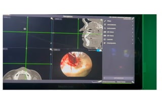The document discusses the benefits and functionalities of navigation systems in endoscopic sinus surgery, highlighting their ability to provide real-time imaging for precise tissue removal and enhanced surgical safety. It explains the technical aspects of the navigation technology, including image processing and registration techniques, as well as various applications such as tumor localization and complex anatomy management. Clinical evidence suggests that the implementation of navigation systems significantly reduces surgical complications.