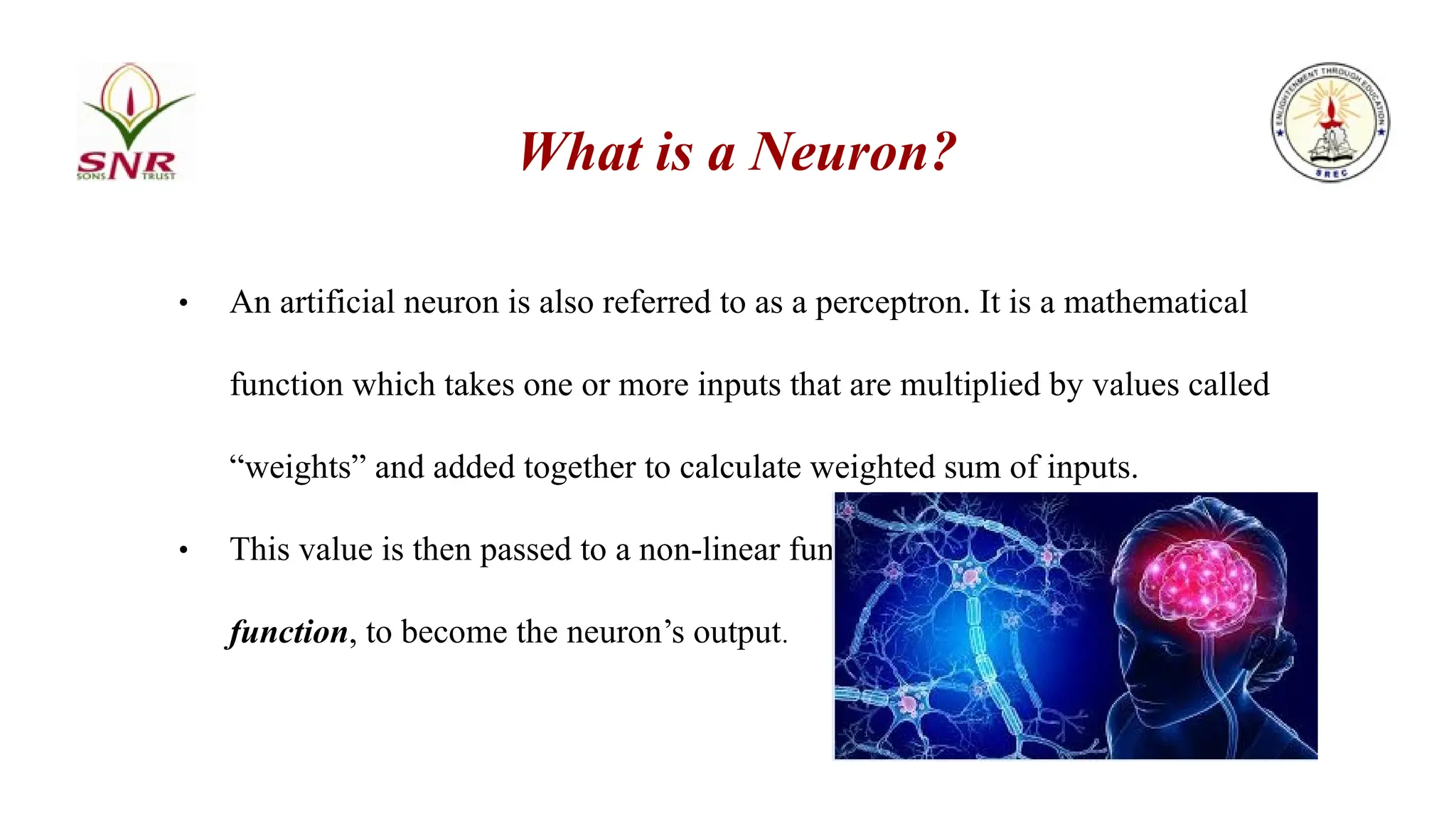 ● An artificial neuron is also referred to as a perceptron. It is a mathematical