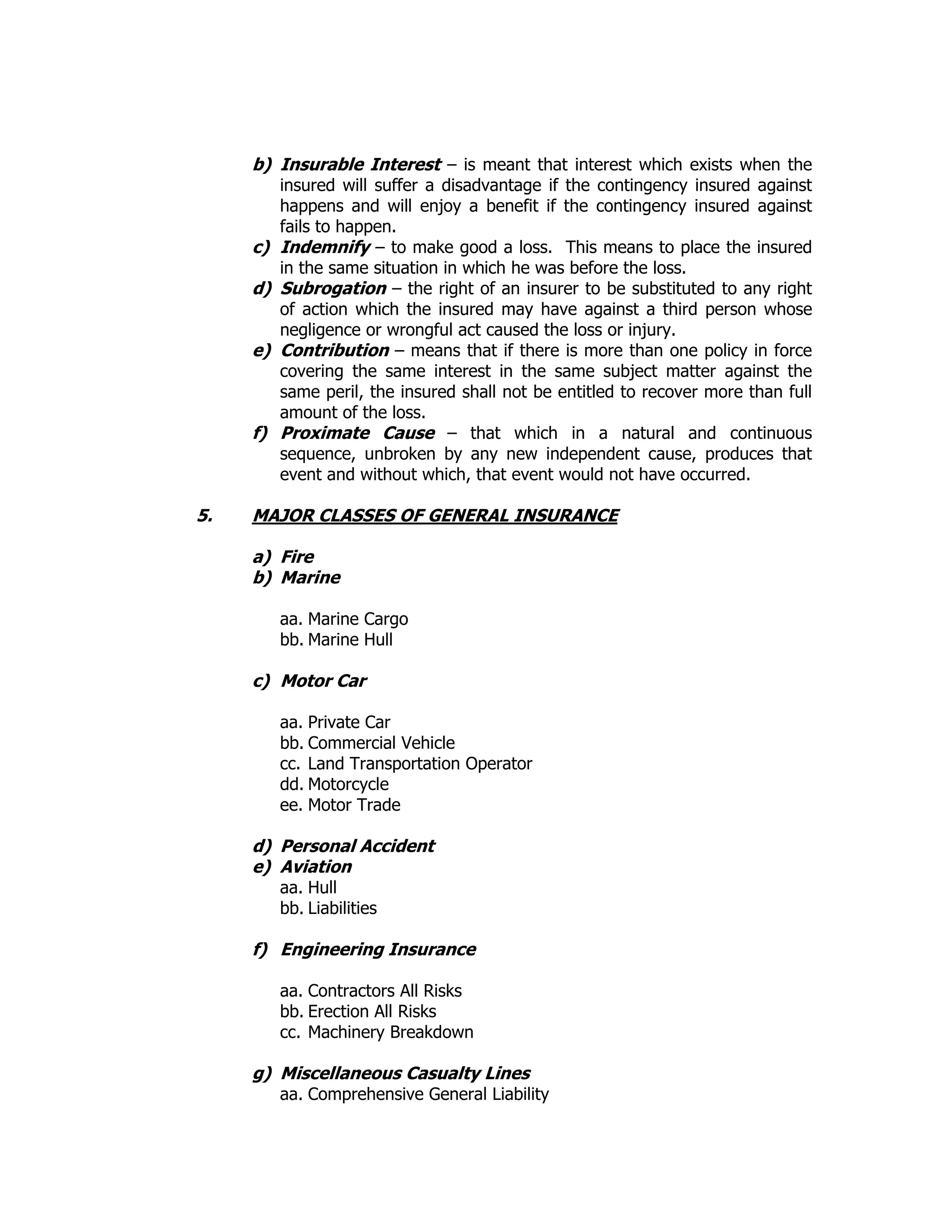 This document provides an overview of non-life insurance concepts in the Philippine setting. It defines insurance and outlines the essential elements of an insurance contract, including competent parties, subject matter, consideration, insurable interest, and more. It also discusses the major classes of general insurance like fire, marine, motor, and personal accident insurance. Key non-life insurance forms and concepts are explained such as policies, endorsements, risks, perils, hazards, and parties to an insurance contract. The document focuses specifically on fire insurance in its second part, defining it and outlining policy terms, sums insured, insurable interests, and exclusions.