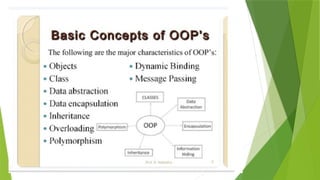 The document discusses memory models in object-oriented programming (OOP), including stack and heap memory, which are essential for managing object data and behaviors. It also introduces basic elements of the Unified Modeling Language (UML), such as class diagrams, attributes, methods, and relationships like association and inheritance. Furthermore, it describes the concept of default constructors and constructor overloading in class design.
