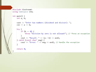 Once the throw statement is fulfilled, the program ends and jumps to the