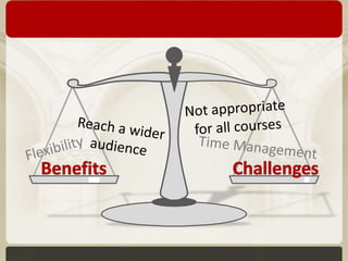 The document provides an introduction to online teaching and learning, aimed at both newcomers and those seeking to refresh their skills. It includes statistics on online enrollment and definitions of different types of online courses, alongside initial considerations and components necessary for effective online course design. Resources and contact information for further inquiries are also included.