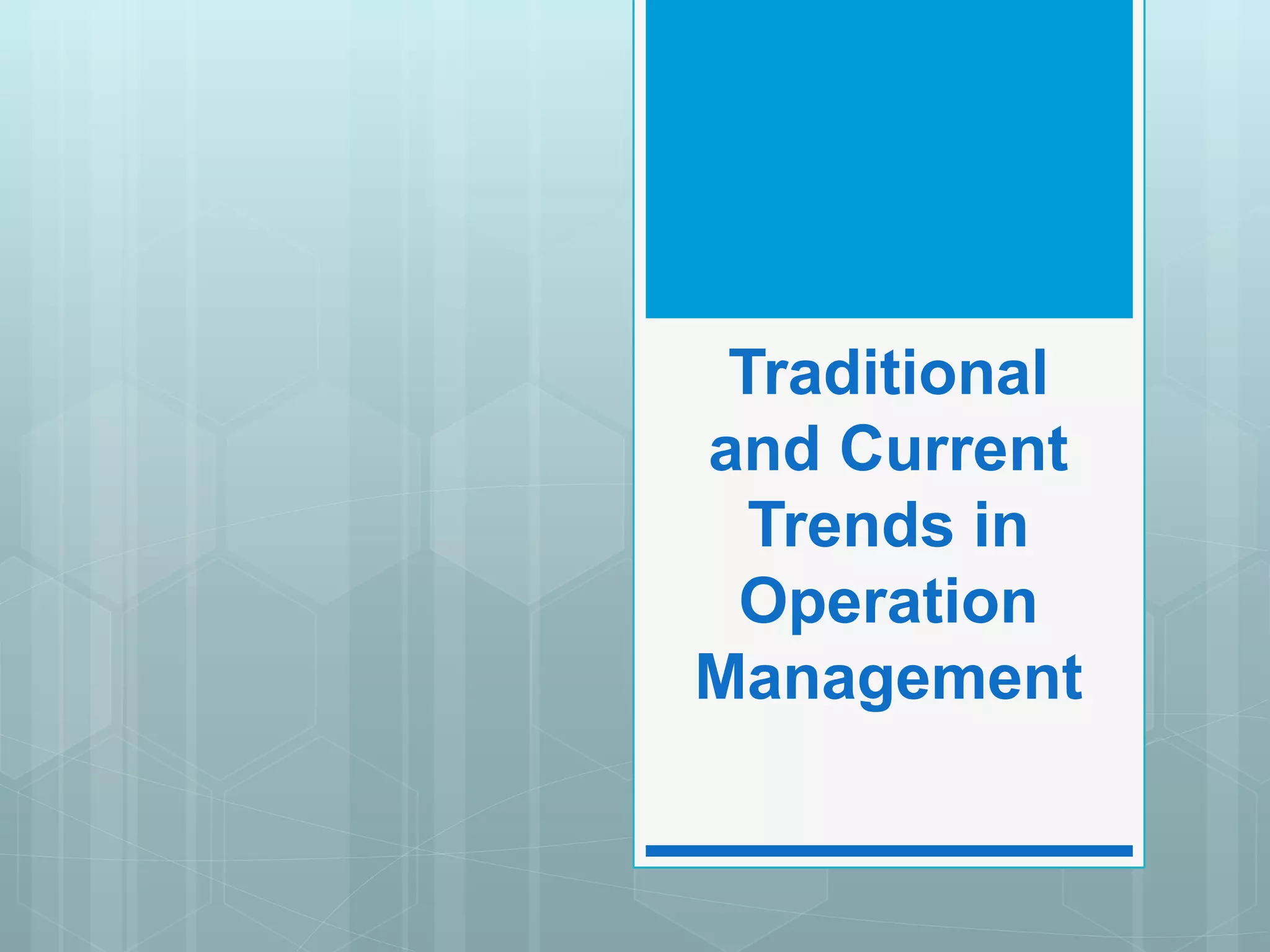 The document outlines traditional and current trends in operations management, including a shift from local to global focus, batch production to just-in-time delivery, and mass production to mass customization. It also discusses the differences between goods and services, noting that goods are tangible, can be inventoried, and have more uniform inputs, while services are intangible, produced and consumed simultaneously, and have high customer interaction and inconsistent definitions. Finally, it describes how technology has impacted operations management through better customer relations, more efficient processes, lower costs, expanded supply chains, and new business models.