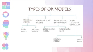 This document provides an introduction to operations research. It begins by defining operations research as a scientific approach to solving management problems through the application of analytical methods. This allows managers to make better decisions. The document then discusses the history and origins of operations research, noting that it emerged from efforts during World War II to apply analytical techniques to military problems. It provides examples of the scope and techniques of operations research, including linear programming, queuing theory, and decision theory. The document outlines the typical phases of an operations research project as judgment, research, and action. It concludes by discussing some advantages and limitations of operations research.