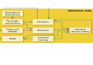 This document provides an introduction to organizational behavior. It defines key terms like OB, management functions, and dependent and independent variables that influence organizational outcomes. It describes how OB draws from various disciplines like psychology, sociology, and anthropology to study individual and group behavior in organizations. It also outlines major challenges and opportunities for applying OB concepts, like responding to workforce diversity, improving quality and ethics.