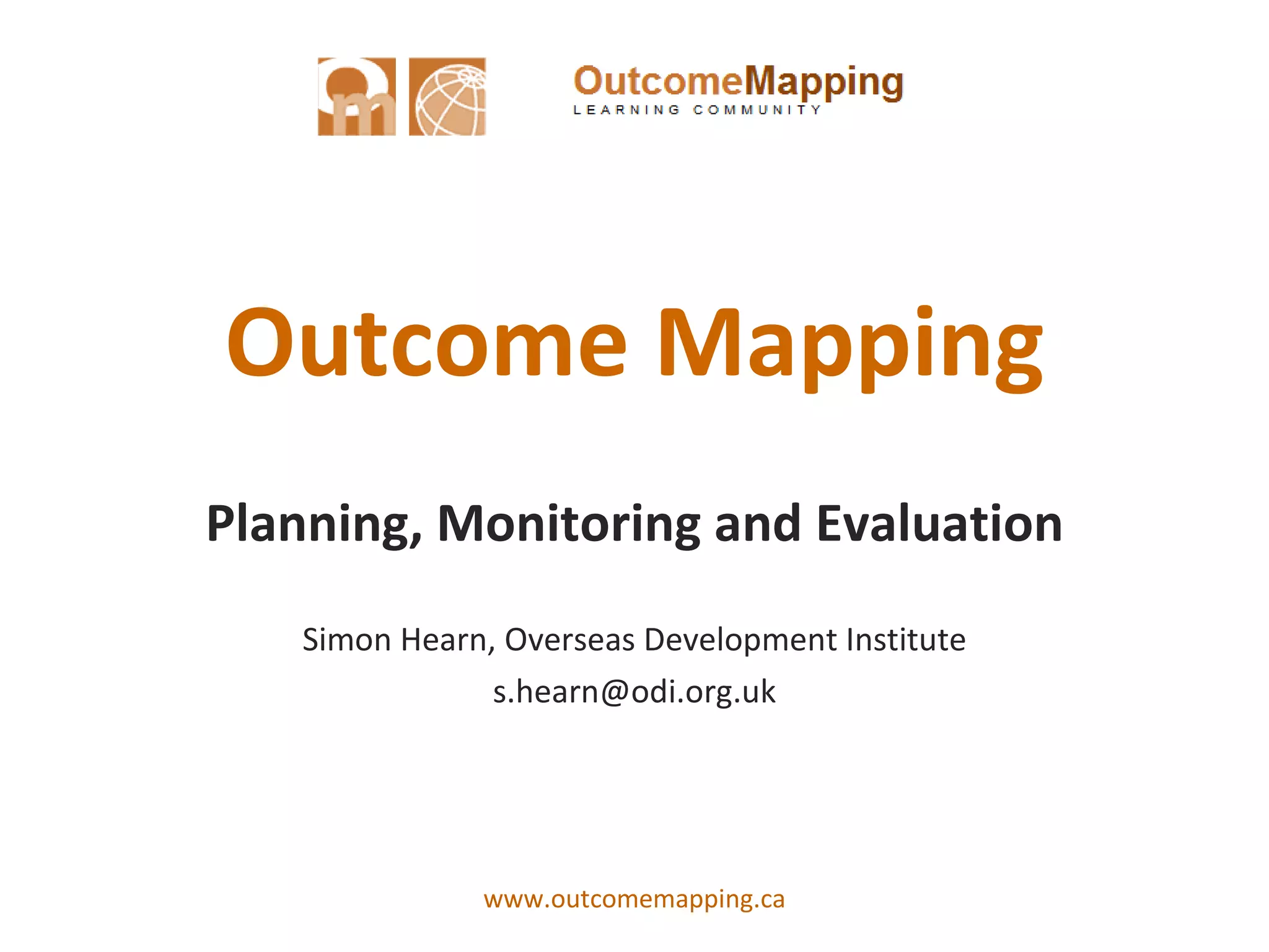 The document outlines the principles, steps, and application of outcome mapping (OM) in planning, monitoring, and evaluation, particularly in the context of social change interventions. It describes key concepts such as boundary partners, outcomes, and the importance of understanding cause and effect in open systems, while emphasizing participatory methods for effective assessment and organizational learning. Additionally, it provides insights into the Swayamsiddha project aimed at enhancing women's empowerment and health in India through community-driven approaches and self-help groups.