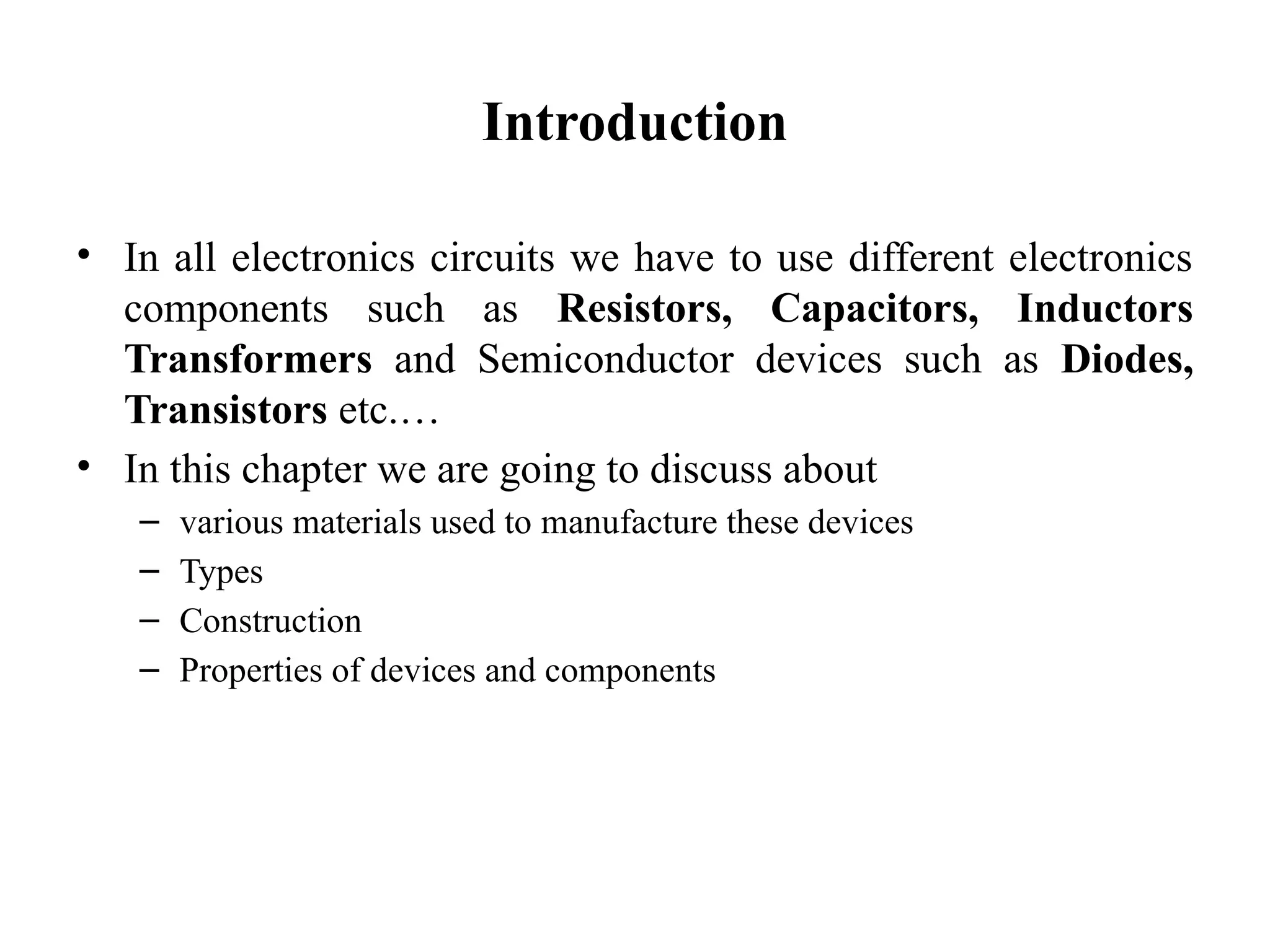 The document provides an overview of passive circuit elements such as resistors, capacitors, and inductors, detailing their definitions, functions, classifications, equations, and selection parameters. It also briefly discusses active components, Kirchhoff's laws, diodes, relays, and transistors, explaining their roles in electronic circuits. The aim is to familiarize readers with the fundamental concepts and applications of these electronic components in various fields.