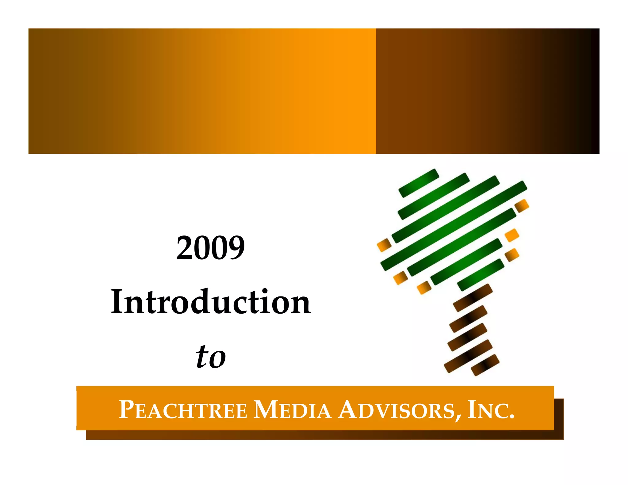 Peachtree Media Advisors provides investment banking services focused on mergers and acquisitions, capital raises, and valuations for media companies. They have expertise in sectors like online publishing, search/analytics, and out-of-home advertising. While online advertising growth is expected to slow in 2009 due to economic conditions, interactive media continues gaining share as consumers engage more with digital options. Major industry players expect continued growth, but at lower rates, and will focus on improving ad relevance and acquisitions.