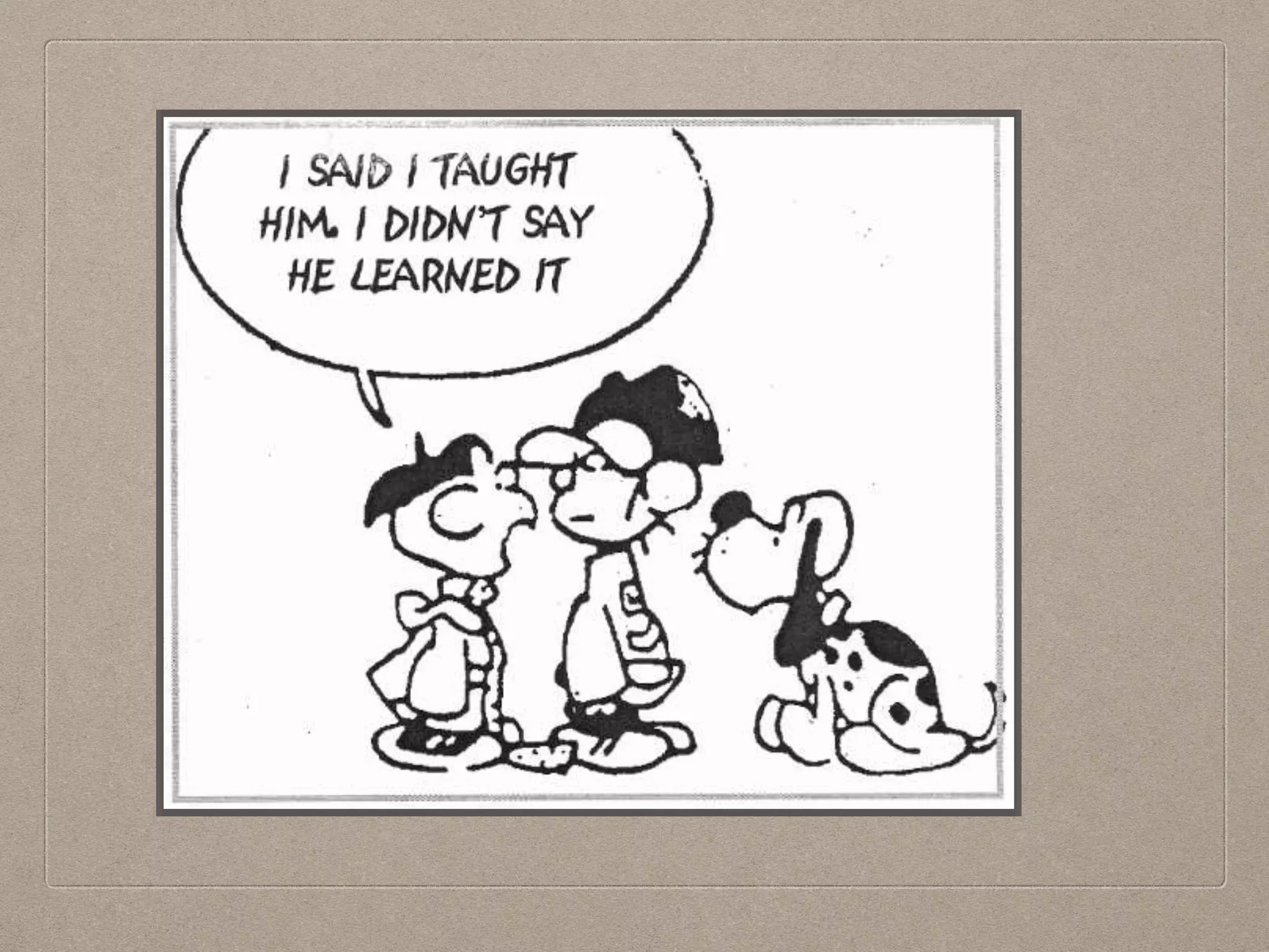 #22 Also we talking about learning and not just teaching - they are not the same thing! We need to be sure not just that we have taught things and covered the curriculum or examination syllabus requirements but that these things have been learned - thus the importance of assessment.