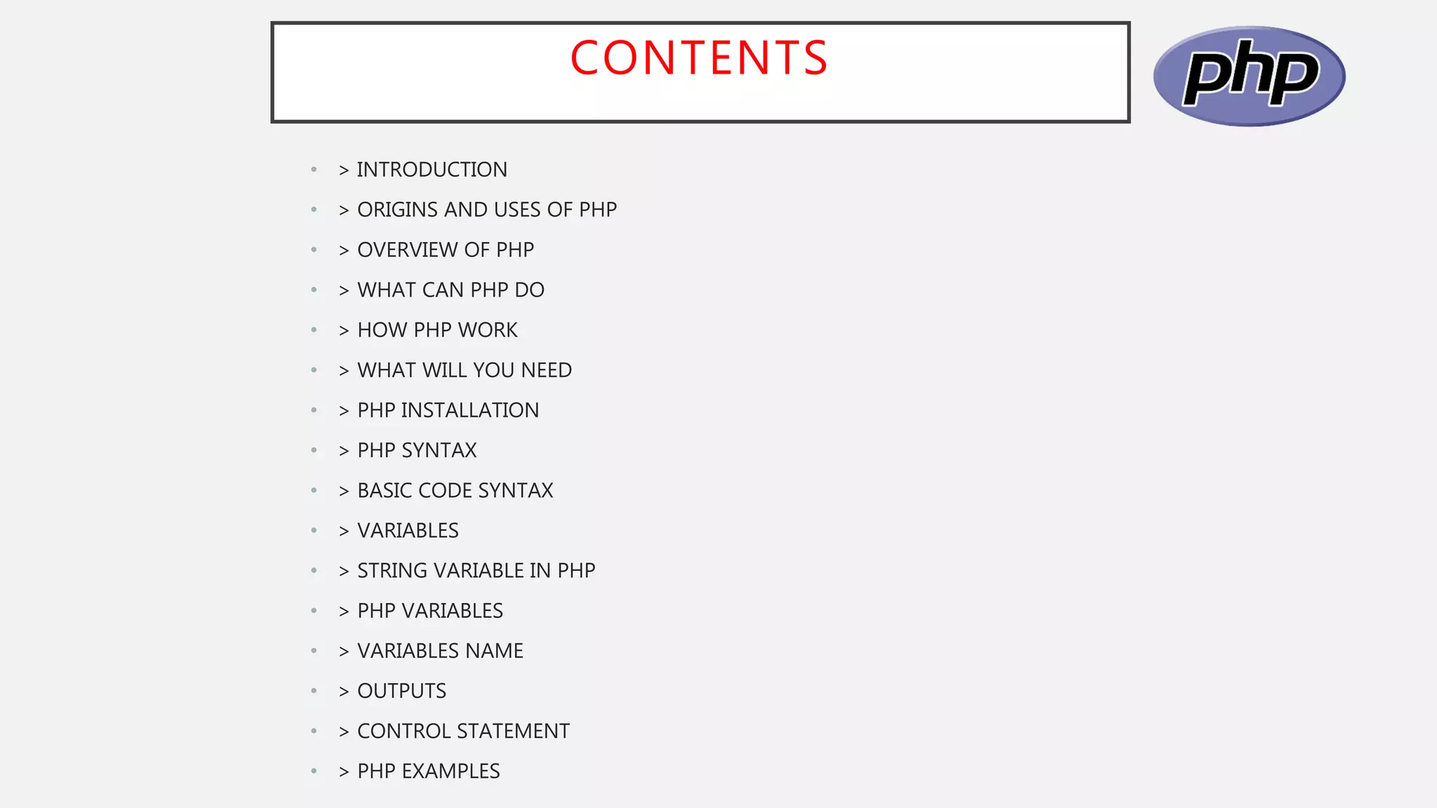 This document provides an overview of PHP, including: