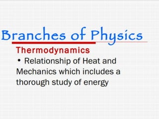 Physics is the study of matter, energy and forces in nature. It explains various phenomena we observe in daily life like vision, electricity and nuclear power. Physics has many applications and is important to understand the world around us.