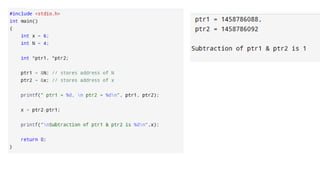 • PointerArithmetic is the set of valid arithmetic operations that can be performed on pointers.