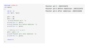 pointer arithmetic operations are slightly different from the ones that we generally use for