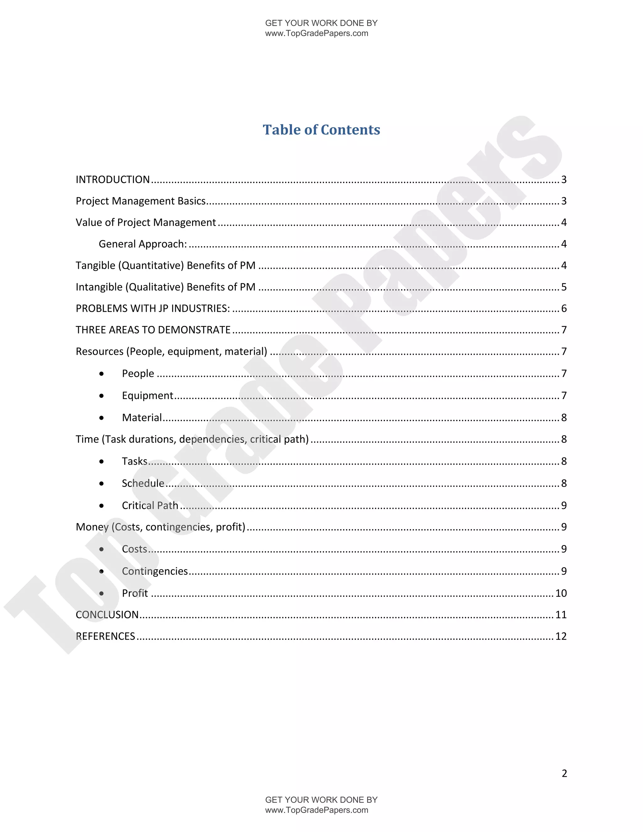 This document discusses the benefits of project management. It describes project management as a way to carefully plan and organize efforts to accomplish specific objectives like building construction or software implementation. Project management provides tangible benefits like saving time and money, improving efficiency, and increasing quality. It also provides intangible benefits like successfully delivering projects, goal clarity, coordinated resources, managed risks, and improved customer satisfaction.