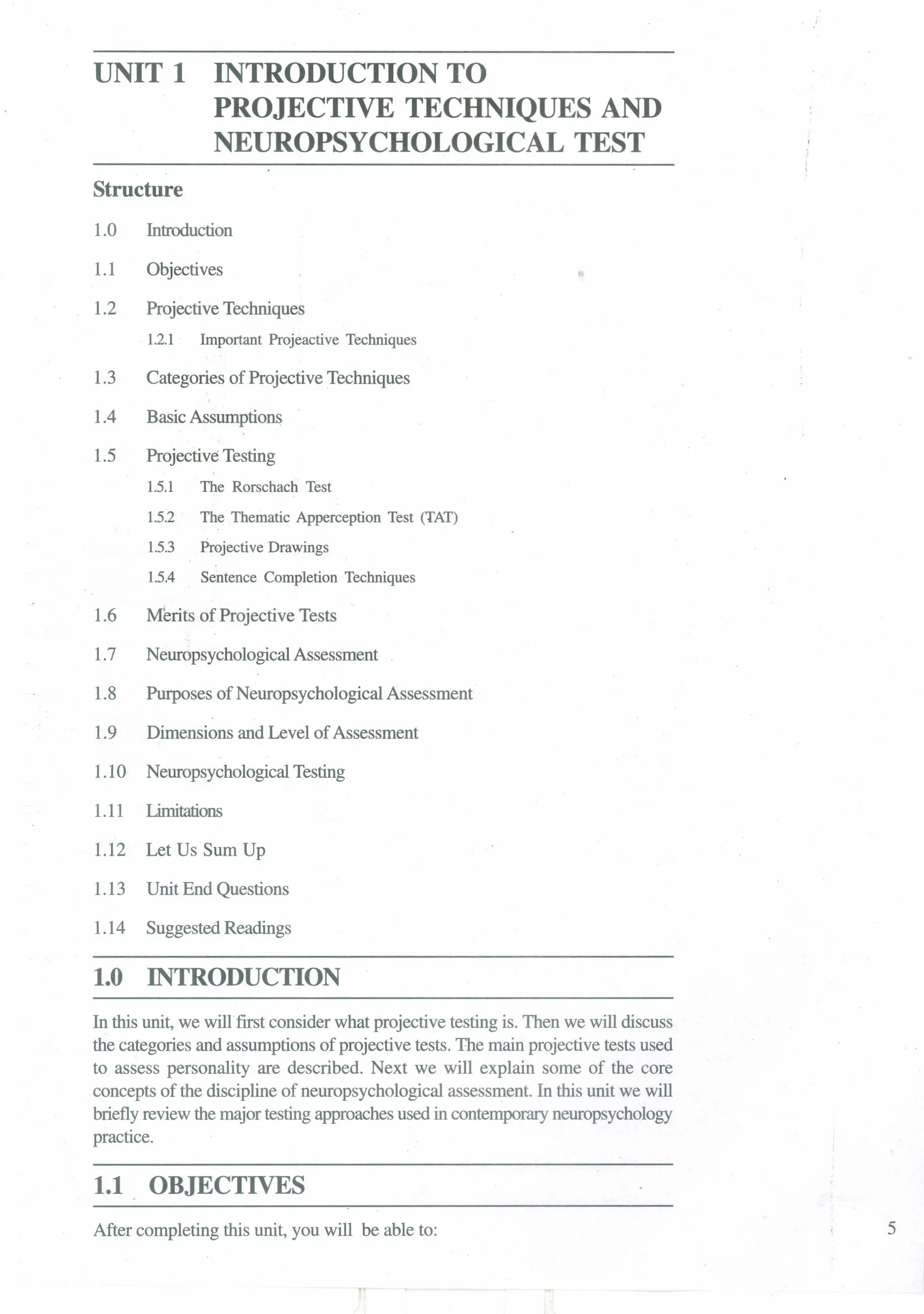 This document provides an overview of projective techniques and neuropsychological testing, outlining their definitions, methods, and major tests such as the Rorschach and Thematic Apperception Test (TAT). It emphasizes the significance and limitations of projective techniques in assessing personality and psychological functioning, highlighting concerns around reliability and validity. The document concludes with a discussion on the ongoing use of these techniques in clinical practice despite criticisms and shifts toward objective assessments.
