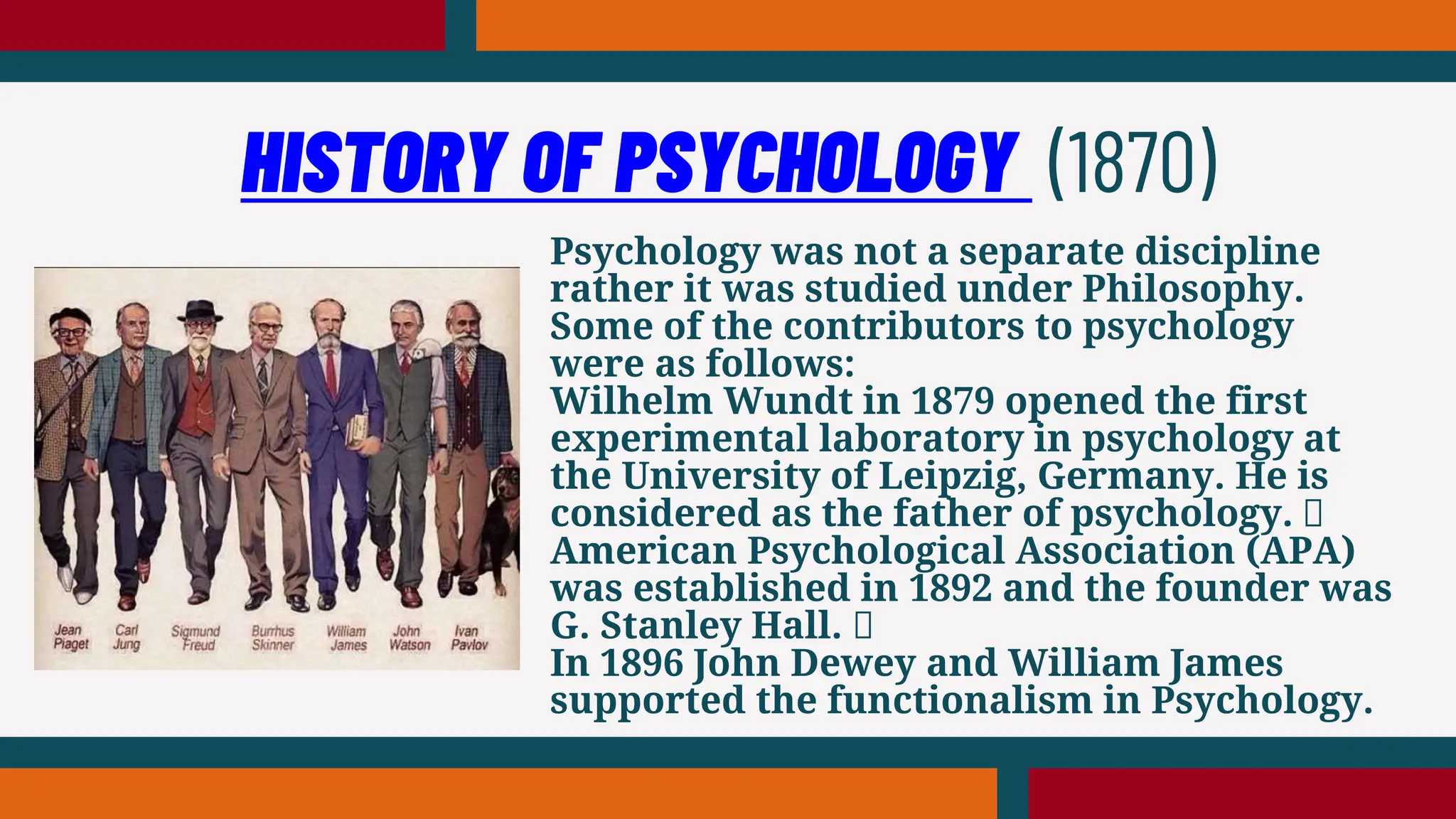 The document discusses the history and evolution of psychology as a discipline, highlighting key figures such as Wilhelm Wundt, Sigmund Freud, and B.F. Skinner, along with foundational concepts like structuralism, behaviorism, and humanistic psychology. It emphasizes psychology as a scientific study of human behavior and mental processes, covering various subfields in both basic and applied psychology, as well as research methods used in the field. The document also touches on the goals of psychology, which include describing, explaining, predicting, and improving human behavior.