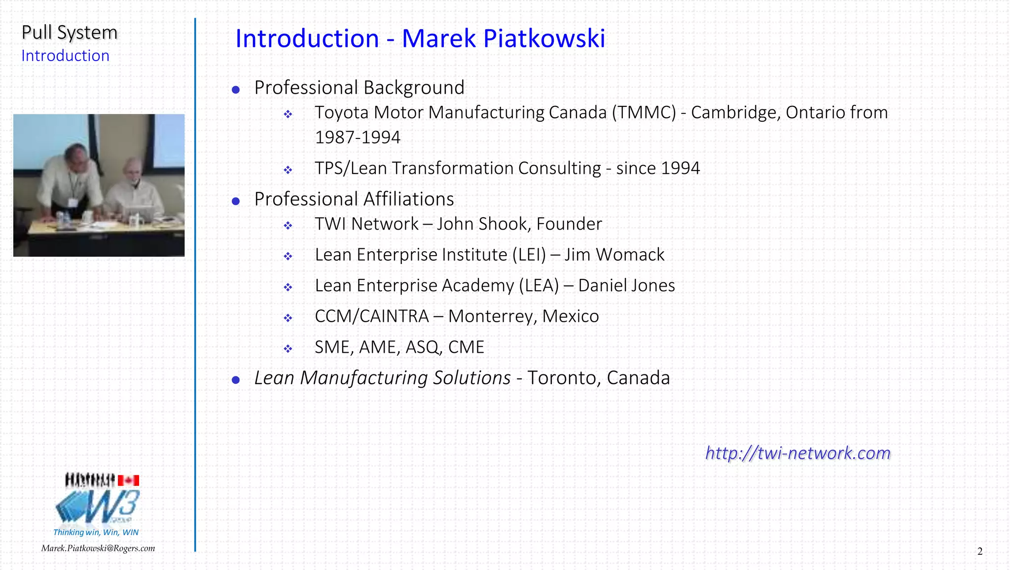 The document introduces the concept of a pull system in manufacturing. It explains that a pull system models production after a supermarket, where the downstream process "pulls" parts as needed from the upstream supplier or process. This contrasts with a traditional push system where parts are produced and pushed to downstream processes based on a schedule. The key advantages of a pull system include only producing what is needed, eliminating overproduction and waste, and ensuring good flow of materials through the process. Kanban cards are also introduced as the mechanism for signaling production requests between processes in a pull system.