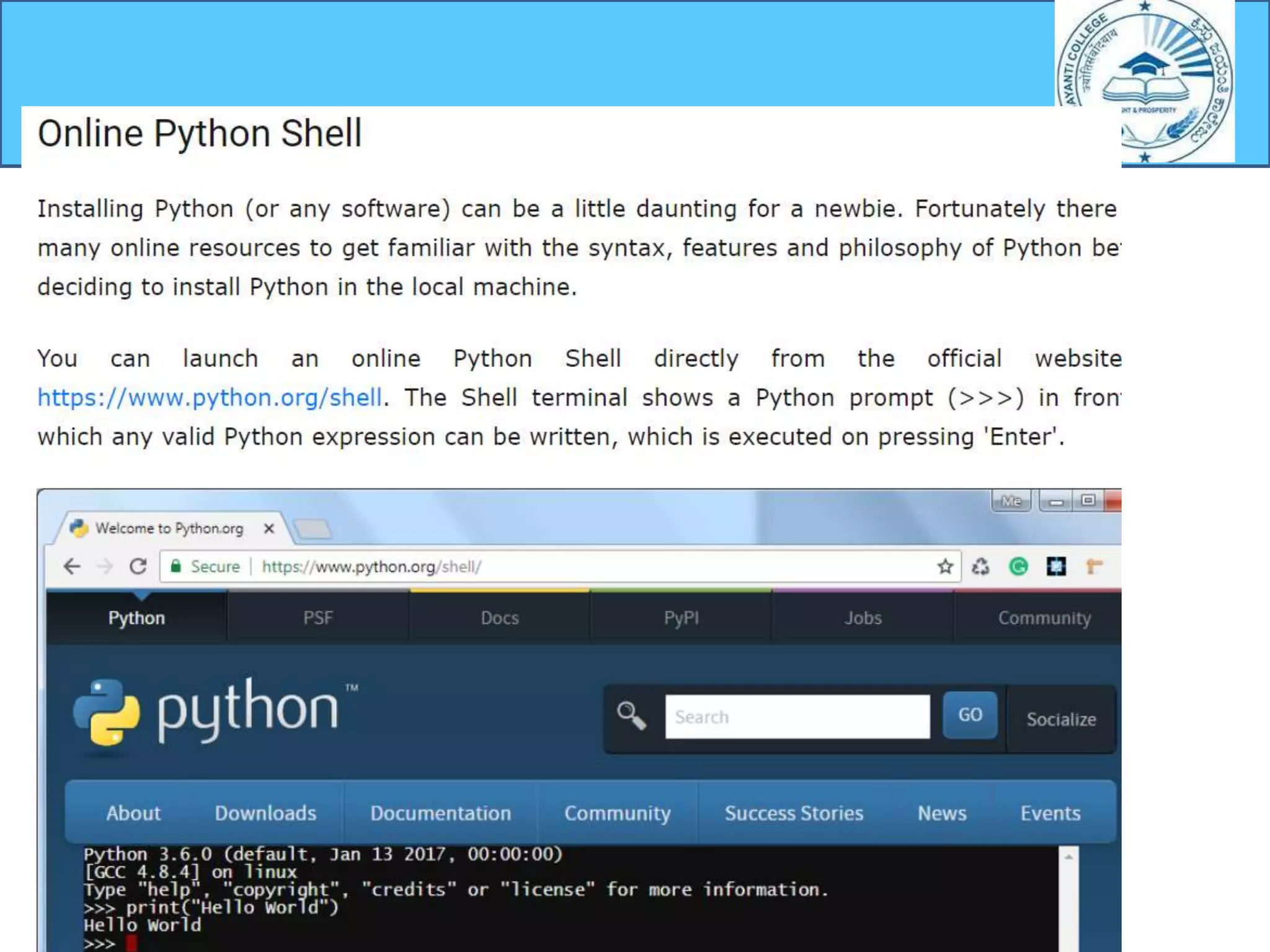 Instructions on how to download Python from its official website.