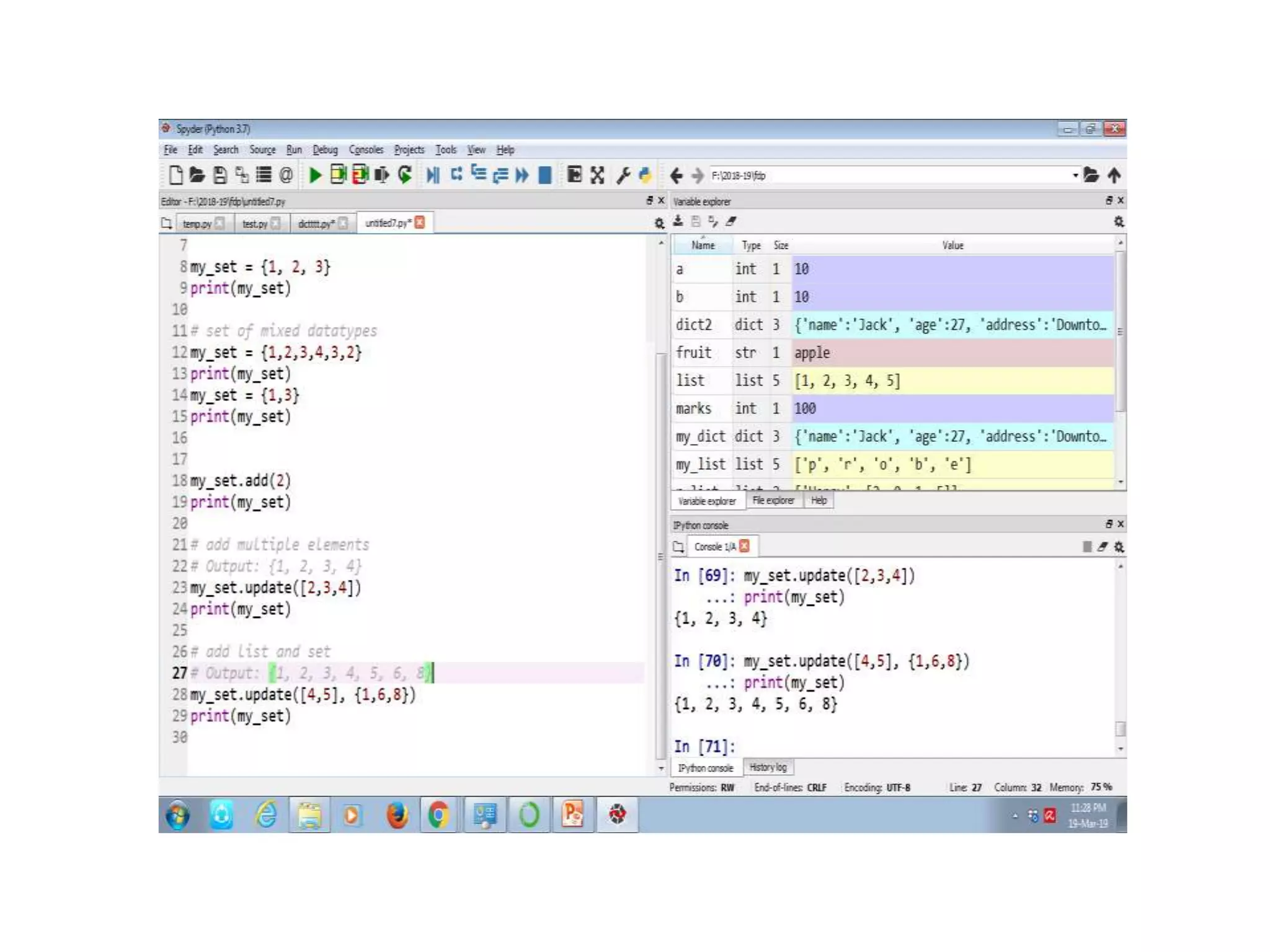 Description of Python dictionaries including their structure, functions, and how to access keys and values.Overview of Python sets, their properties, methods for adding and removing elements, and handling duplicates.