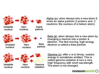 Radiation can be ionizing or non-ionizing. Ionizing radiation like x-rays and gamma rays can damage cells by ionizing them. Non-ionizing radiation like visible light and microwaves do not have enough energy to ionize atoms. The health effects of radiation depend on dose, exposure time, and radiation type. Proper safety protocols aim to keep radiation exposure as low as reasonably achievable.