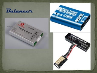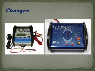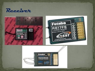 The document provides an overview of different types of radio-controlled (RC) planes including trainer, sport, aerobatic, 3D, gliders, jet planes, and helicopters, specifying their features and characteristics. It also discusses materials used in construction (such as balsa wood, foam, and fiberglass) and components needed for operation, including engines, servos, and batteries. Specifications vary among plane types, emphasizing factors like wing design, speed, and maneuverability.