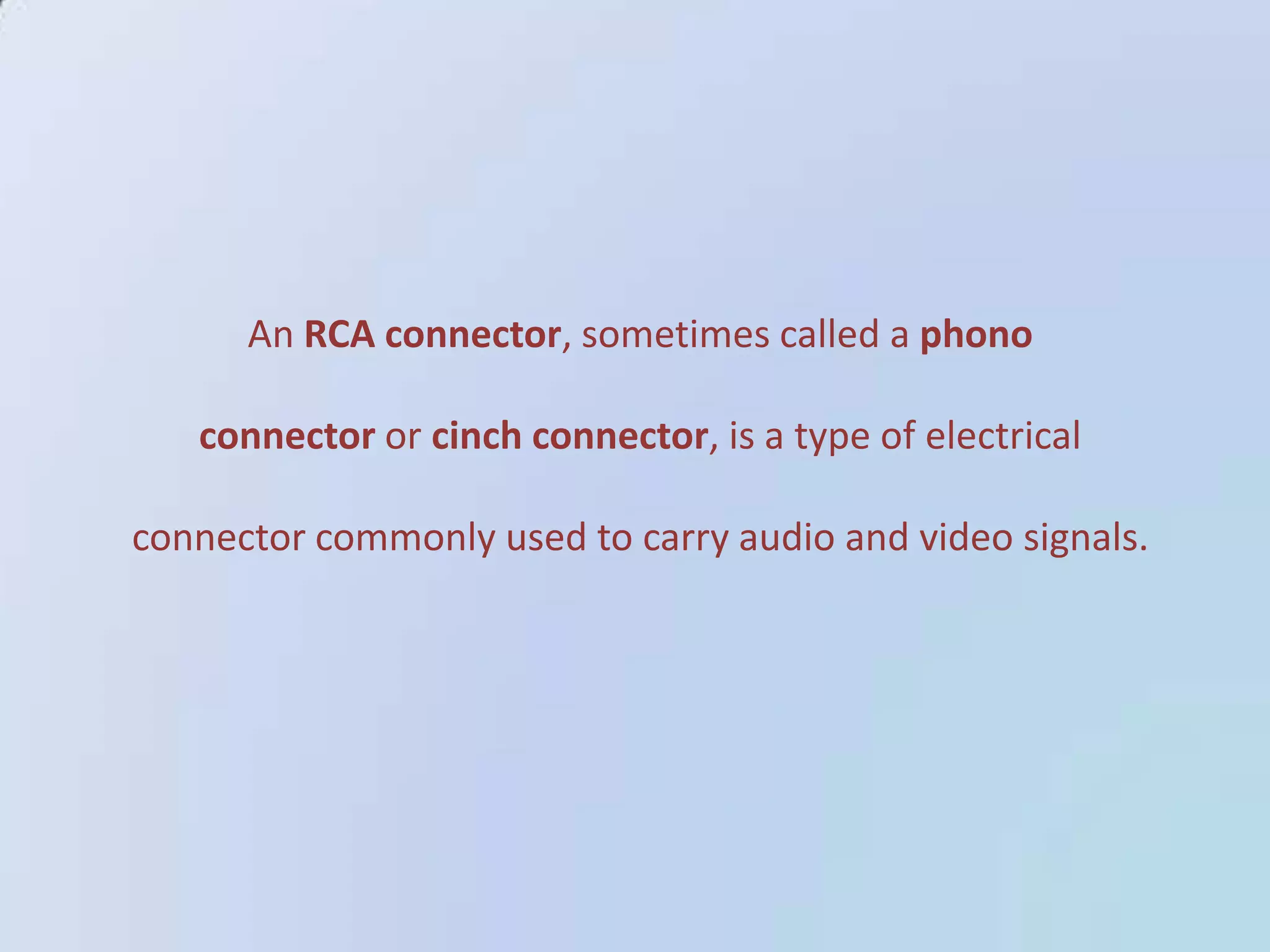 RCA connectors are a type of electrical connector commonly used to carry audio and video signals. Originally introduced by RCA in the early 1940s to connect pickups to radio-phonograph consoles, RCA connectors began replacing quarter inch phone connectors for consumer audio applications in the 1950s as component high fidelity systems became popular. While still used widely for audio/video, RCA connectors were designed simply for internal connections, with refinements added over time to remain compatible as applications expanded beyond their original purpose.