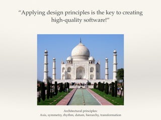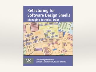 The document discusses refactoring in software development, highlighting its importance in maintaining and improving code quality while managing complexity over time. It covers concepts such as design principles, common code 'smells' that indicate the need for refactoring, and practical techniques and tools for restructuring code without altering its observable behavior. Key principles include programming to interfaces, favoring object composition, and the significance of unit testing during the refactoring process.