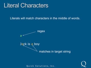 This document provides an introduction to regular expressions, including their history, usage, and practical examples like finding duplicate words in a file. It covers various components of regex such as literal characters, special characters, character classes, and anchors, alongside advanced concepts like back references and lookaheads. Additionally, it lists resources for further learning about regex.