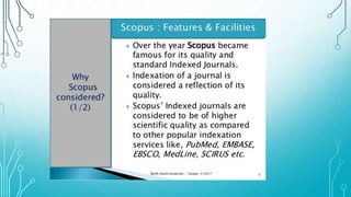 The document presents an introduction to research in science, covering fundamental concepts, the research process, and emphasizing the importance of literature reviews and ethics in research. Key operations in research include data collection, analysis, and report writing, while Scopus is highlighted as a vital database for accessing research information. Ethical principles related to research are also outlined, ensuring the protection of subjects' rights and maintaining integrity in the research process.