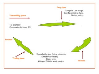 The document provides a comprehensive overview of the retail industry, focusing on the evolution and structure of retailing in India, including various types of retail formats and their functions. It discusses the significance of retail in the Indian economy, major drivers for retail growth, and the challenges faced by the sector. The document also outlines strategic retail planning, including the retail mix and customer relationship management.