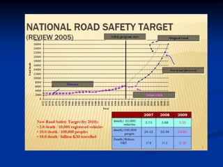 This document discusses road safety as a global problem and provides statistics and information about road accidents in various countries and Malaysia specifically. Some key points: