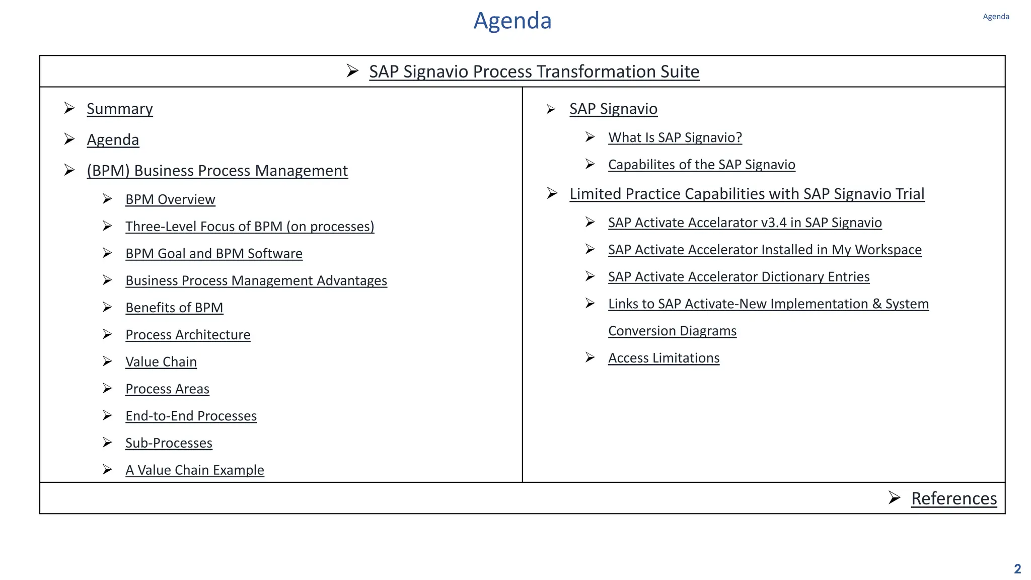The document provides an introduction to the SAP Signavio Process Transformation Suite, detailing its functionalities in business process management (BPM) aimed at improving business performance and fostering cross-department collaboration. It outlines the goals of BPM, advantages such as increased agility, productivity, and compliance, as well as the core capabilities of SAP Signavio, including process collaboration, analysis, modeling, governance, and automation. It emphasizes the importance of BPM in achieving transparency and efficiency in business operations through standardized processes.