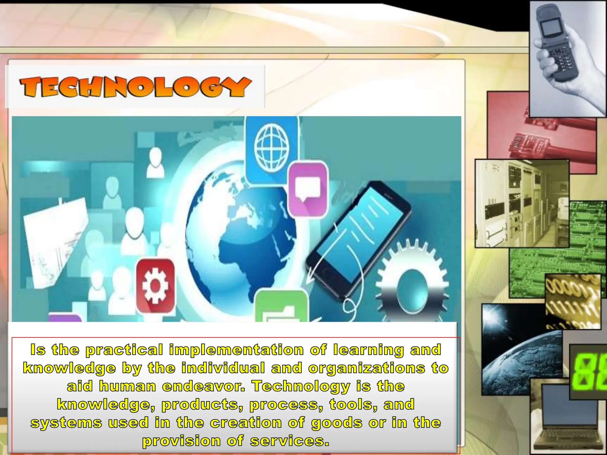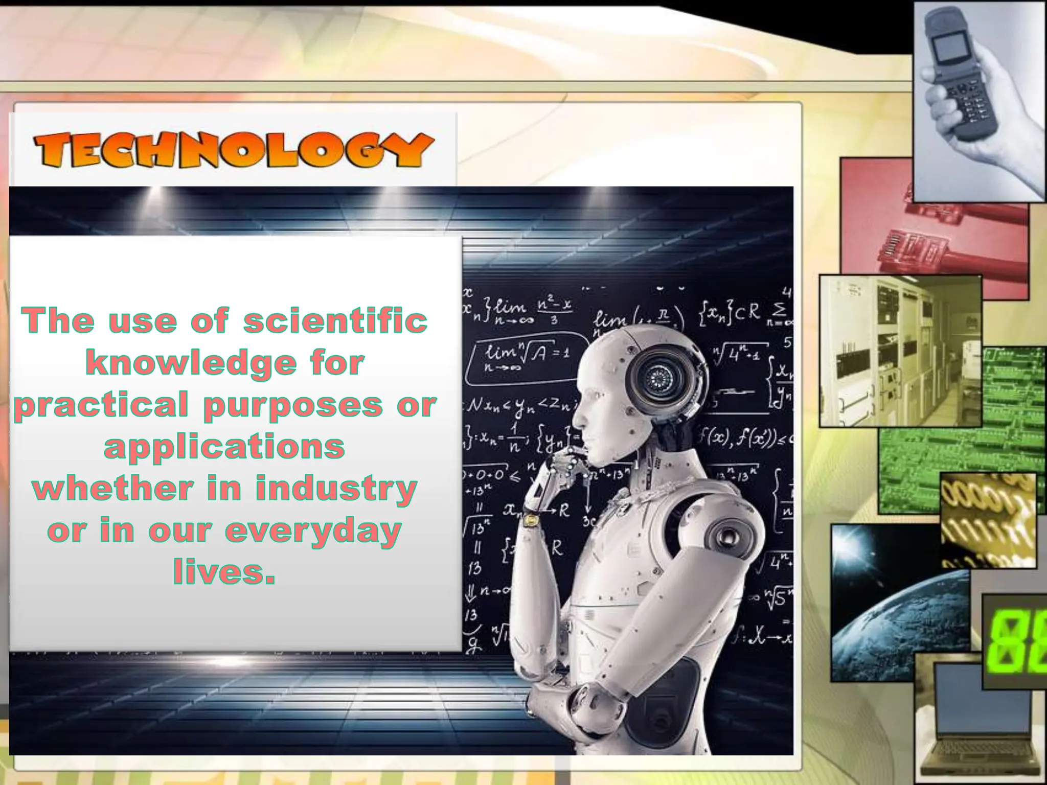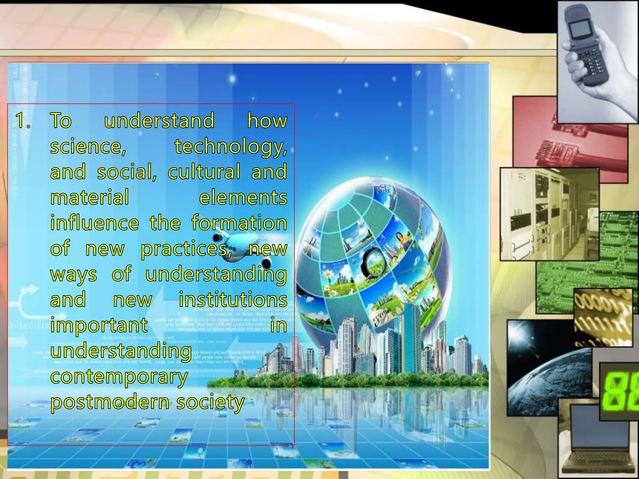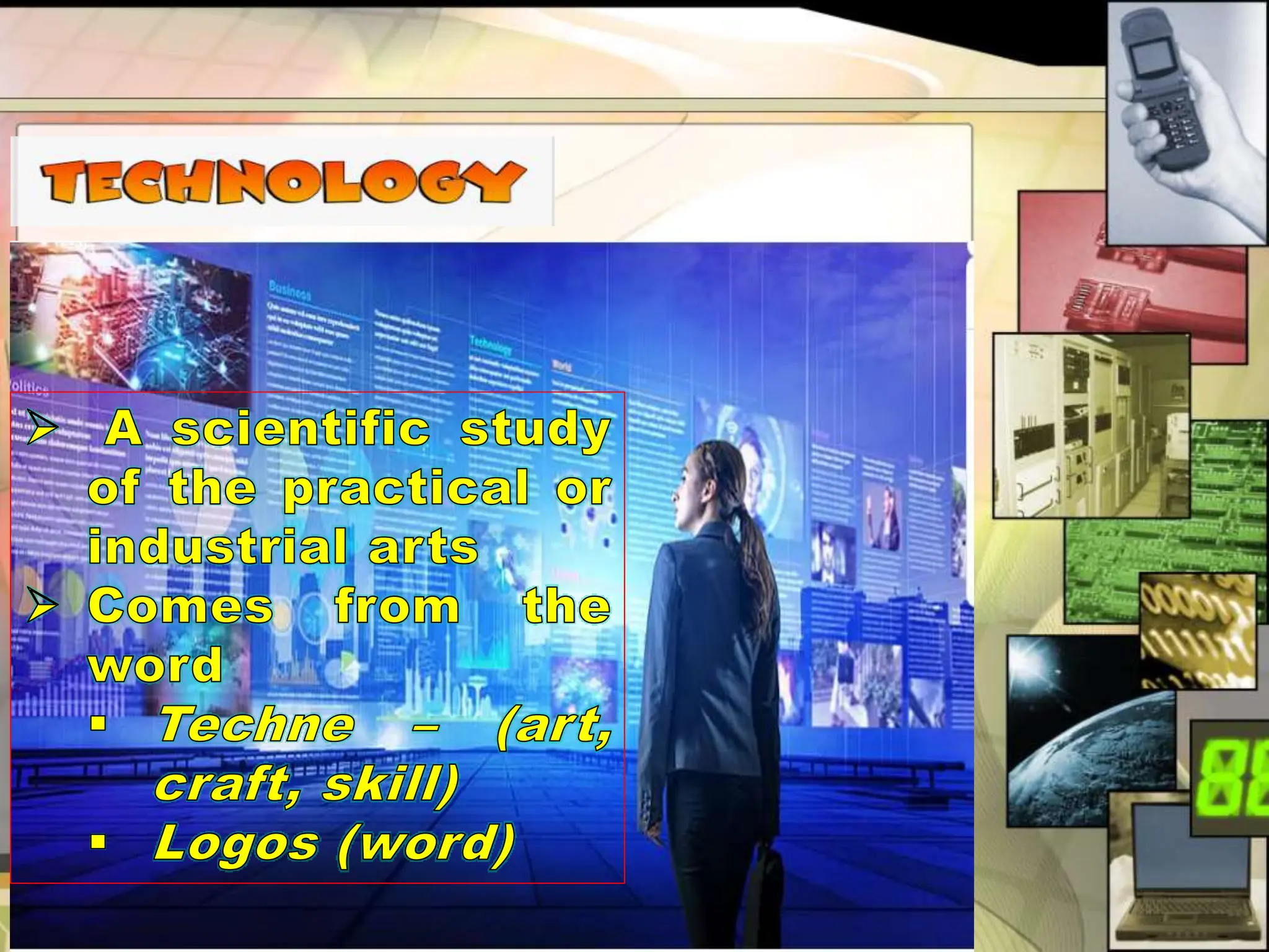 This document provides an introduction to science, technology, and society. It defines science as a systematic body of knowledge based on observation and experimentation. Technology refers to the application of scientific knowledge for practical purposes or to meet human needs. Society is defined as a large group that shares common culture, social structure, and laws within a geographical territory. The relationship between these three concepts - science, technology, and society - is the focus of science, technology, and society studies.