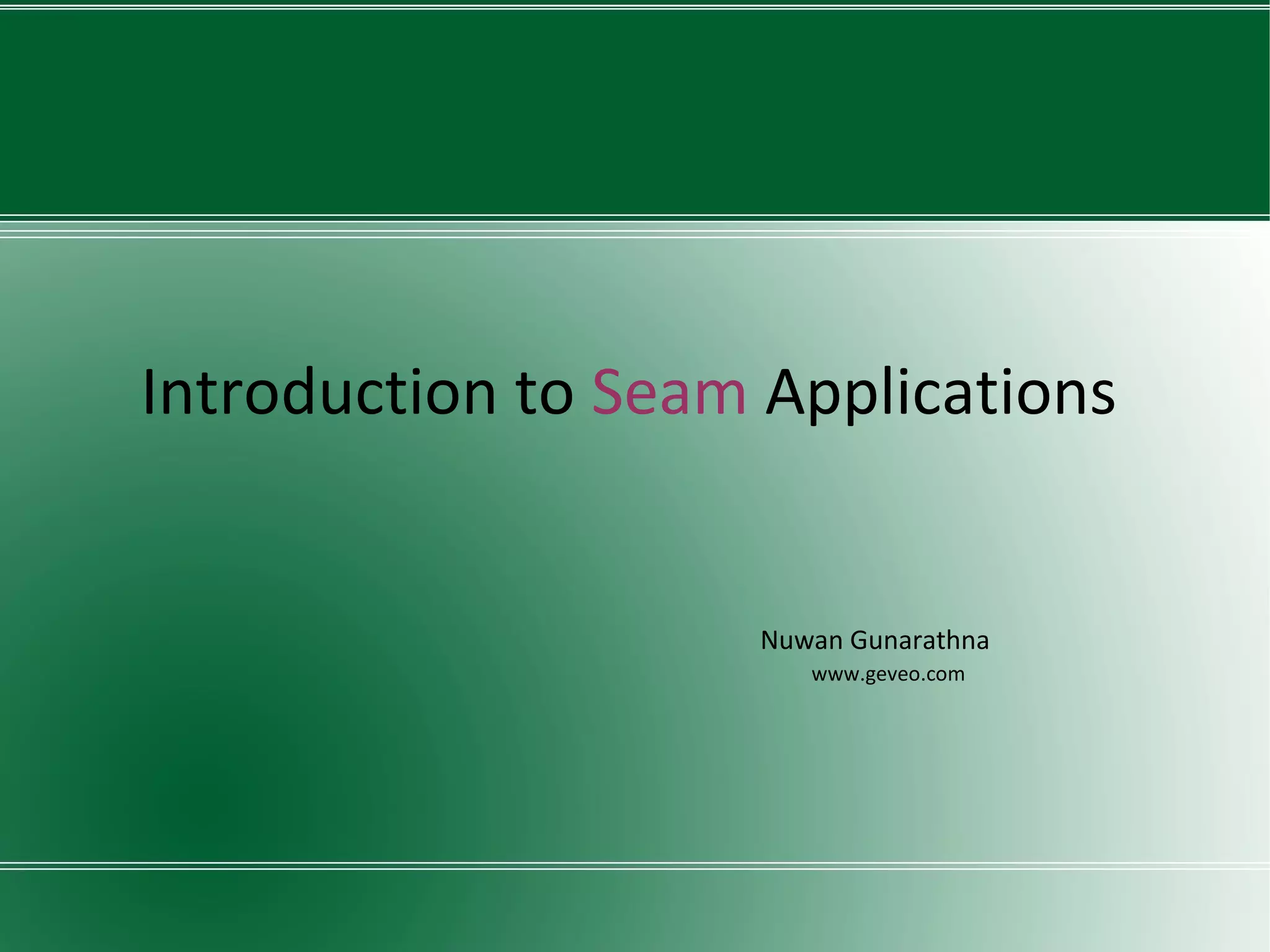 Seam is a Java web application framework that aims to provide a complete solution for developing web applications. It combines technologies like JavaServer Faces (JSF), Enterprise JavaBeans (EJB3) and Java Persistence API (JPA) to allow building stateful web applications in a simpler way. Seam eliminates unnecessary layers and provides features like conversations for state management, dependency injection, an app generator (seam-gen), and integration testing support. Seam exposes business services directly to the view layer to simplify development without separate data transfer objects or access layers.
