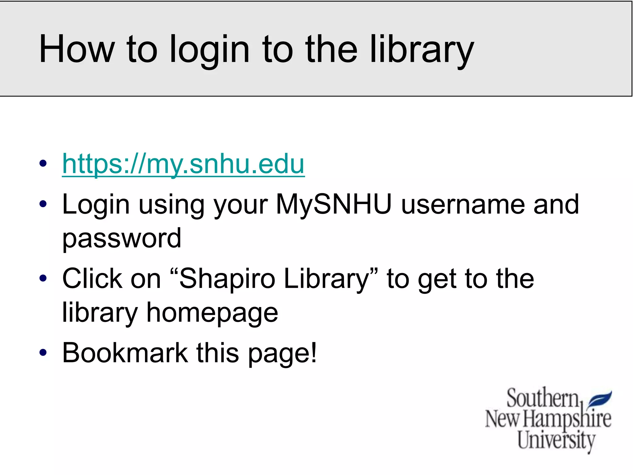 The document provides a comprehensive guide to accessing and utilizing the Shapiro Library resources at Southern New Hampshire University, including how to log in, search for scholarly articles, books, and e-books, as well as citation management tips using RefWorks. It emphasizes the importance of advanced search techniques, accessing full texts, and using the library's catalog and research guides for effective research. Contact information for library assistance and links to various resources are also included for further support.