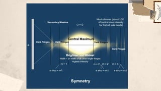 • The central maximum is the highest because β = 0 → intensity = maximum.